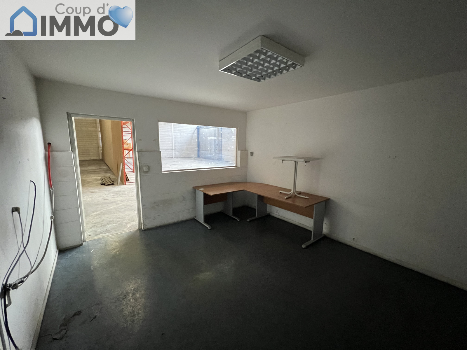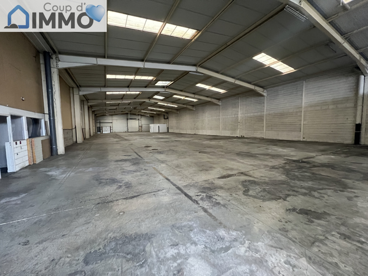 Entrepôt d'environ 1500m2 TRAVERSANT offrant:: Deux entrées de chaque côté du bâtiment, surface d'entrepôt 70X20, bureaux, sanitaires, QUAI DE CHARGEMENT, porte sectionnelle et GRAND PARKING FERME SUR L'AVANT.