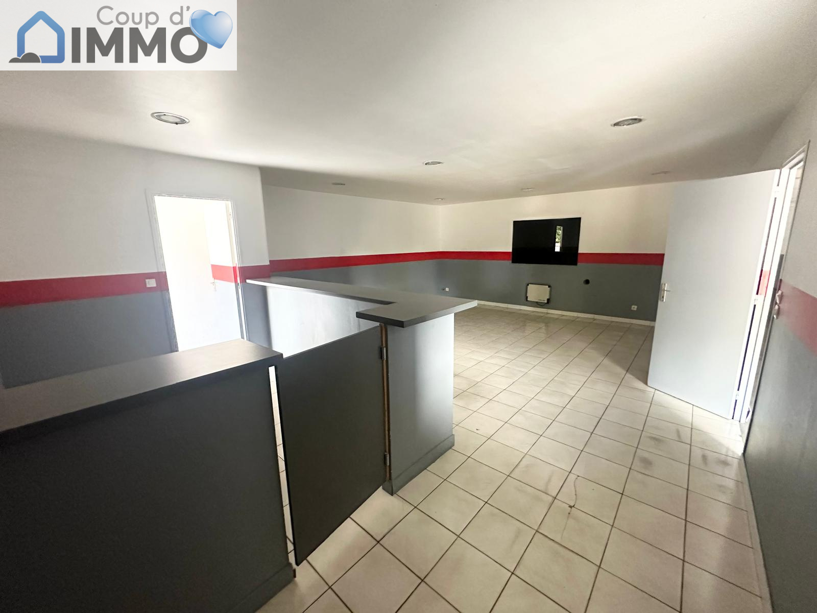 Entrée, surface d'entrepôt, bureau de 40m2, WC.