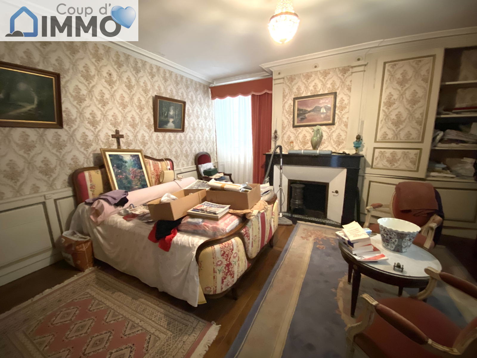 Au premier étage : palier avec une pièce ayant un point d’eau et WC, deux très belles chambres de plus de 20 m² avec placards et cheminées, bureau de 22m² et dressing.