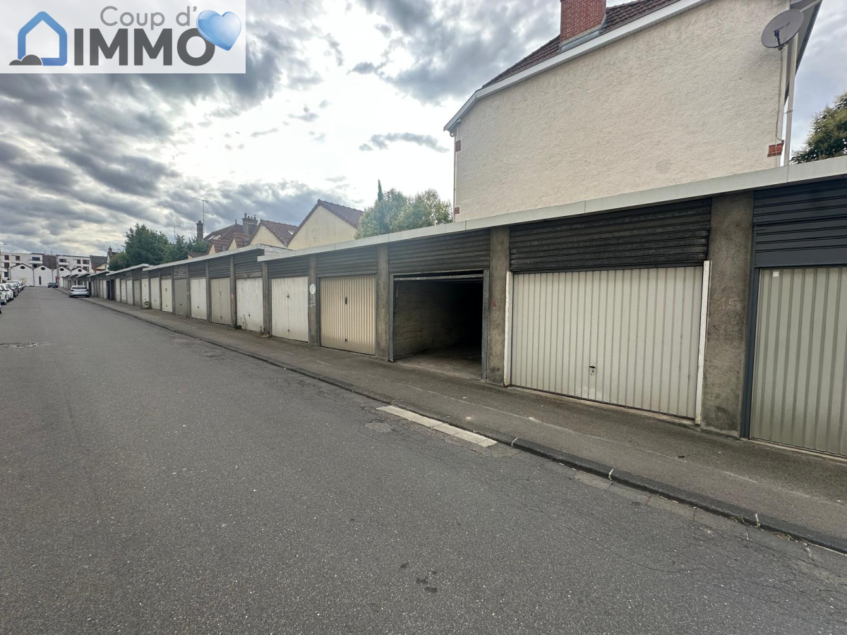 Garage fermé, 14,32 m², au pied d’un immeuble.