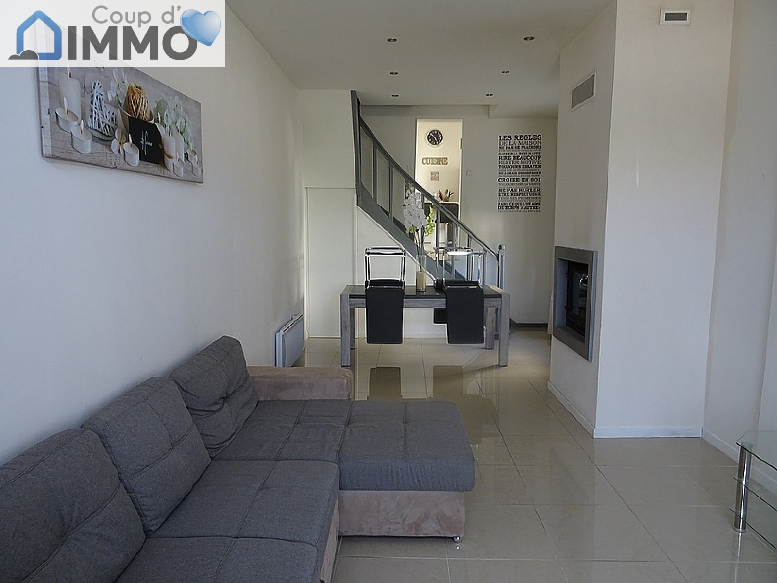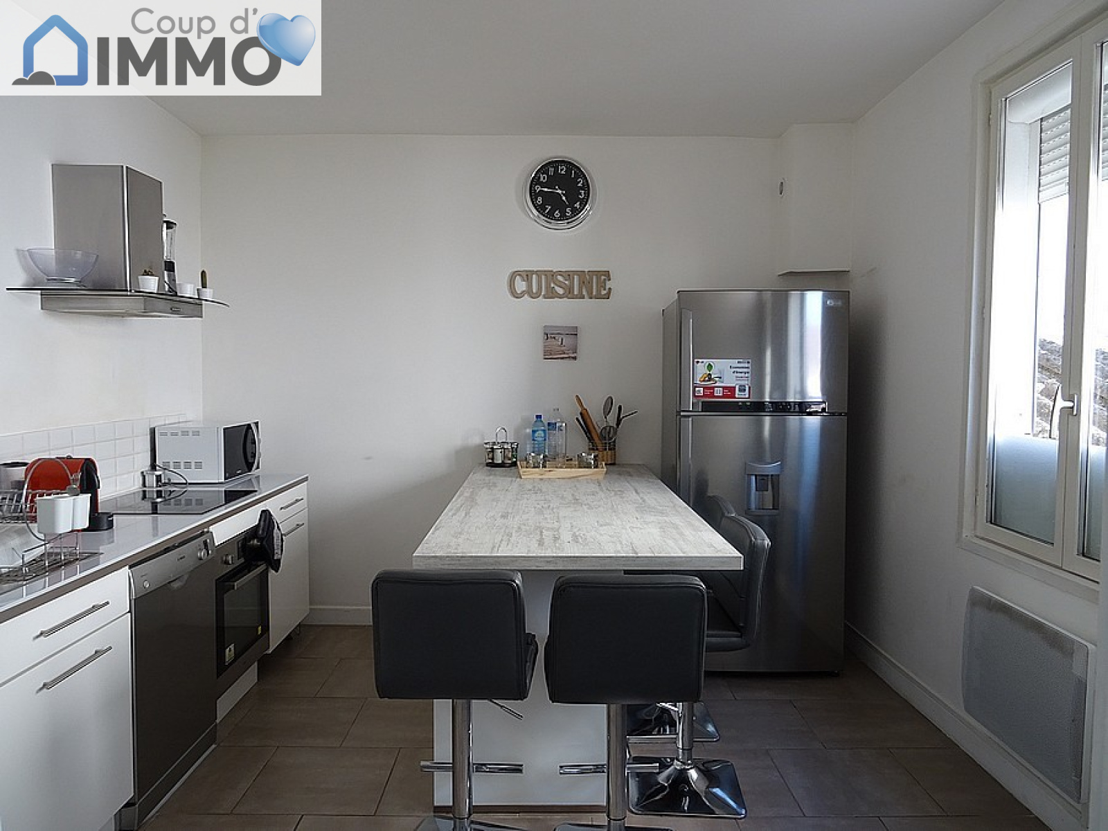 Entrée, cuisine entièrement équipée, séjour double lumineux.