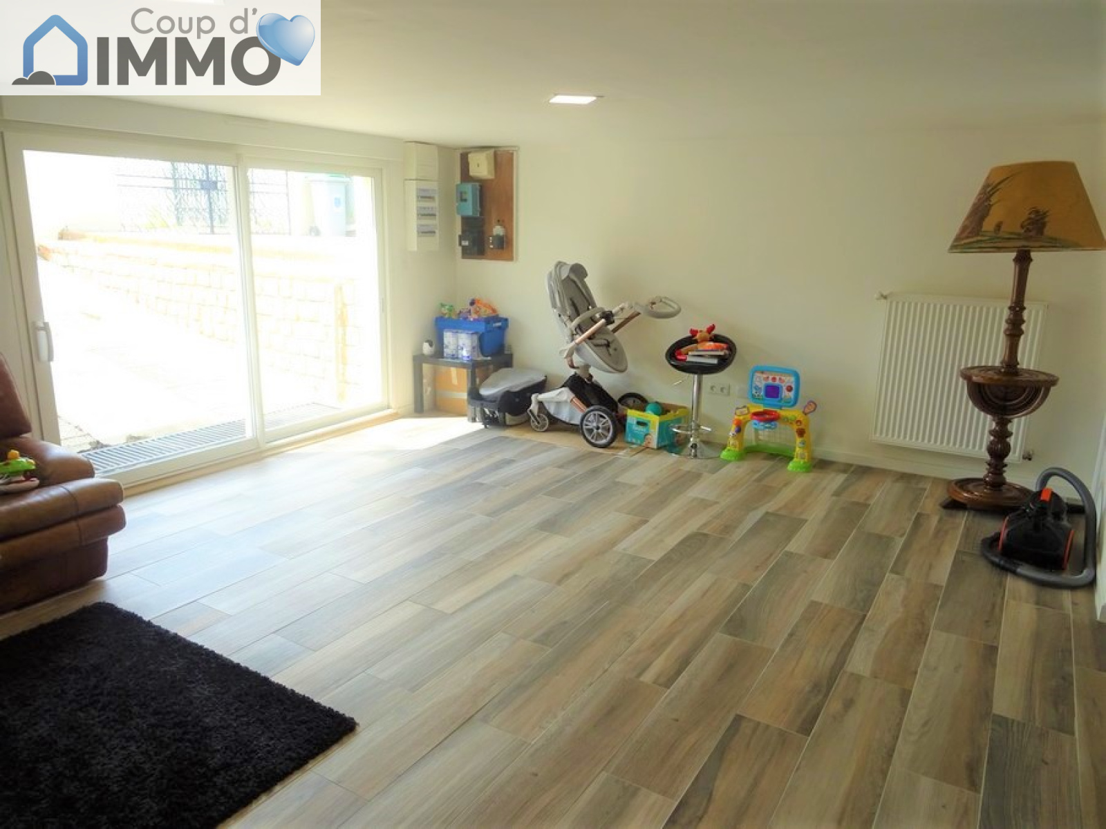 BEL ESPACE DE VIE au sous-sol avec 67m² aménagé en buanderie, PIECE A VIVRE de 25 m² avec baie vitrée, DRESSING de 12 m², CHAMBRE avec accès à l’extérieur, dégagement.